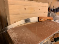 Snittet ske i birk. Behandlet med SKYDD olie fra ikea blandet med instant kaffe. Desværre virkede det ikke helt efter hensigten og der kom mørke pletter på træet. God lektie og gør ik’ så meget, da håndtaget også var blevet lidt asymmetrisk
