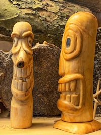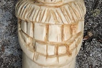 Skåret i kirsebær med øjne af balsatræ og pupiller af en kvist fra bøg. Figuren har desuden ligget i blød i bio-olie blandt med