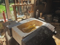 Håndskåret æske i tør cypres under udarbejdelse. Måske der også kommer et låg på