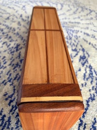Æske af cedertræ, ahorn og mahogni. Behandlet med Danish Oil
